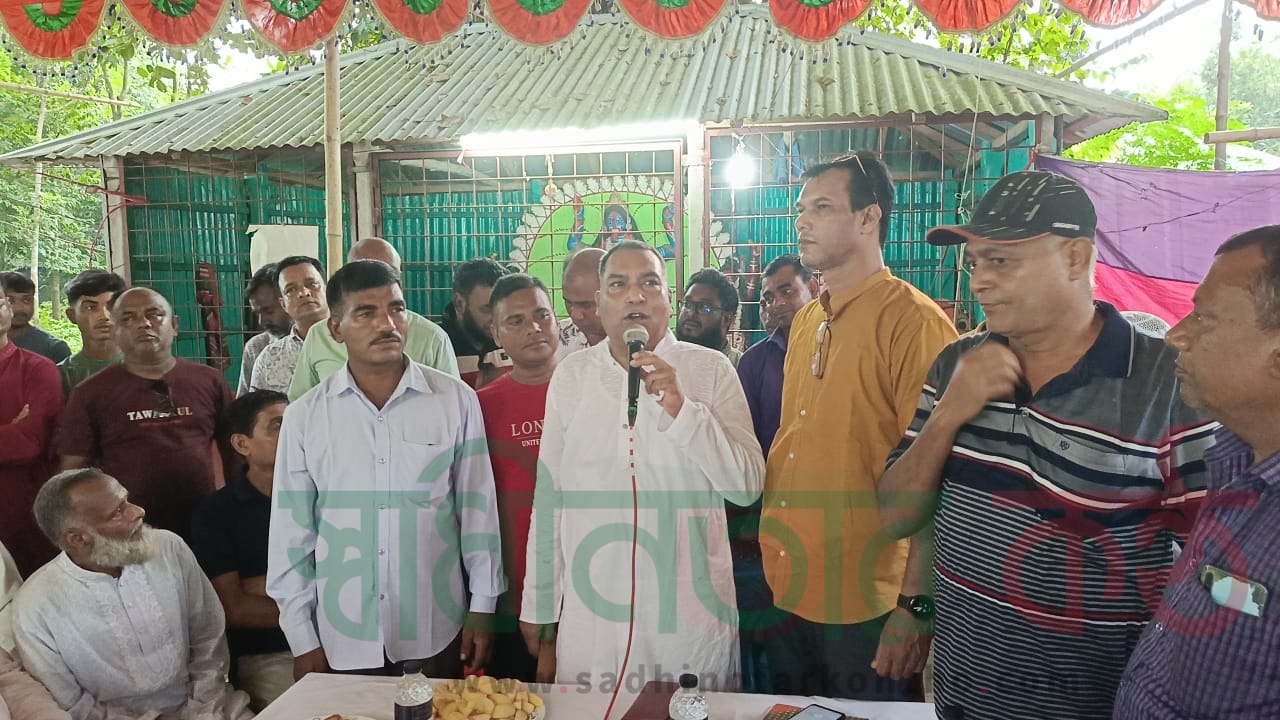 ক্যাপসন ।। পুজা মন্ডপে বক্তব্য দেন,বিএনপি নেতা জাকারিয়া পিনটু।