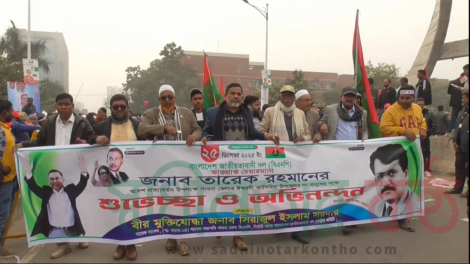 গত বুধবার সকালে পাবনা-৪ (ঈশ্বরদী-আটঘরিয়া) নির্বাচনী এলাকা থেকে ট্রেন ও সড়ক পথে আসা বিএনপির সিনিয়র নেতাদের সমন্বয়ে তিনশ ফুটস্থ রাজসিক সংবর্ধনাস্থল পরিদর্শন ও আনন্দ মিছিল শেষে অনুষ্ঠিত সমাবেশে প্রধান অতিথির বক্তব্যে তিনি এসব কথা বলেন। পাবনা জেলা বিএনপির সাবেক মৎস্য বিষয়ক সম্পাদক আব্দুর রশিদ সরদারের সভাপতিত্বে ও ঈশ্বরদী উপজেলা বিএনপির সাবেক সাংগঠনিক সম্পাদক হুমায়ুন কবীর দুলালের সঞ্চালনায় শ্রমিক দলের কেন্দ্রিয় কার্যকরী সভাপতি আহসান হাবিব, পাবনা জেলা বিএনপির অন্যতম নেতা ও সাবেক চেয়ারম্যান জ্যোতি উপজেলা বিএনপির সাবেক সম্পাদক রুহুল আমিন বাবলু, সলিমপুর ইউনিয়ন বিএনপির সভাপতি ফজলুর রহমান মাস্টারসহ পাবনা জেলা,ঈশ্বরদী ও আটঘরিয়া উপজেলা বিএনপি ও অঙ্গসহযোগী সংগঠনের বিভিন্নস্তরের নেতৃবৃন্দ বক্তব্য দেন।